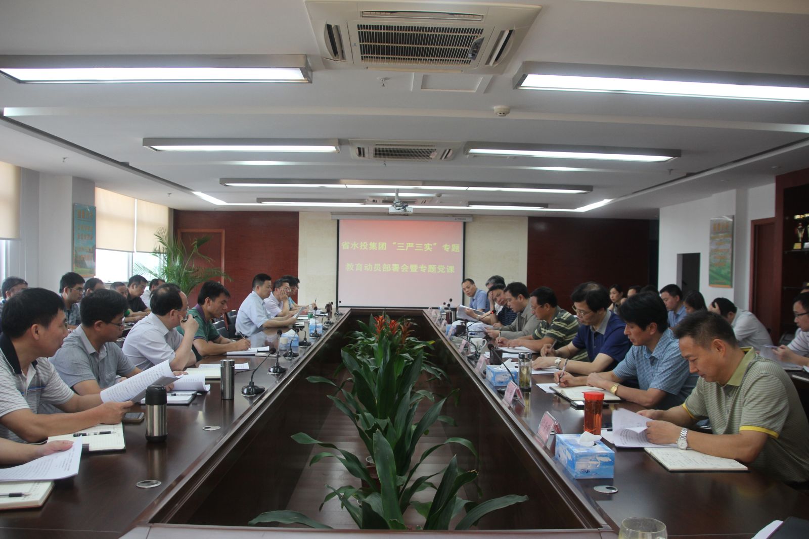 6月29日上午,省水投集團(tuán)召開“三嚴(yán)三實”專題教育動員部署會暨專題黨課。集團(tuán)公司黨委書記、董事長齊偉作動員講話并以“為官踐行三嚴(yán)三實、用權(quán)做到為民務(wù)實清廉”為題上專題黨課。喻小平、蔡益民、冷緒忠、郭佩然、杜強(qiáng)、肖愛國、洪余和、鄒文明等集團(tuán)領(lǐng)導(dǎo)出席會議。集團(tuán)公司中層以上領(lǐng)導(dǎo)人員參加會議。