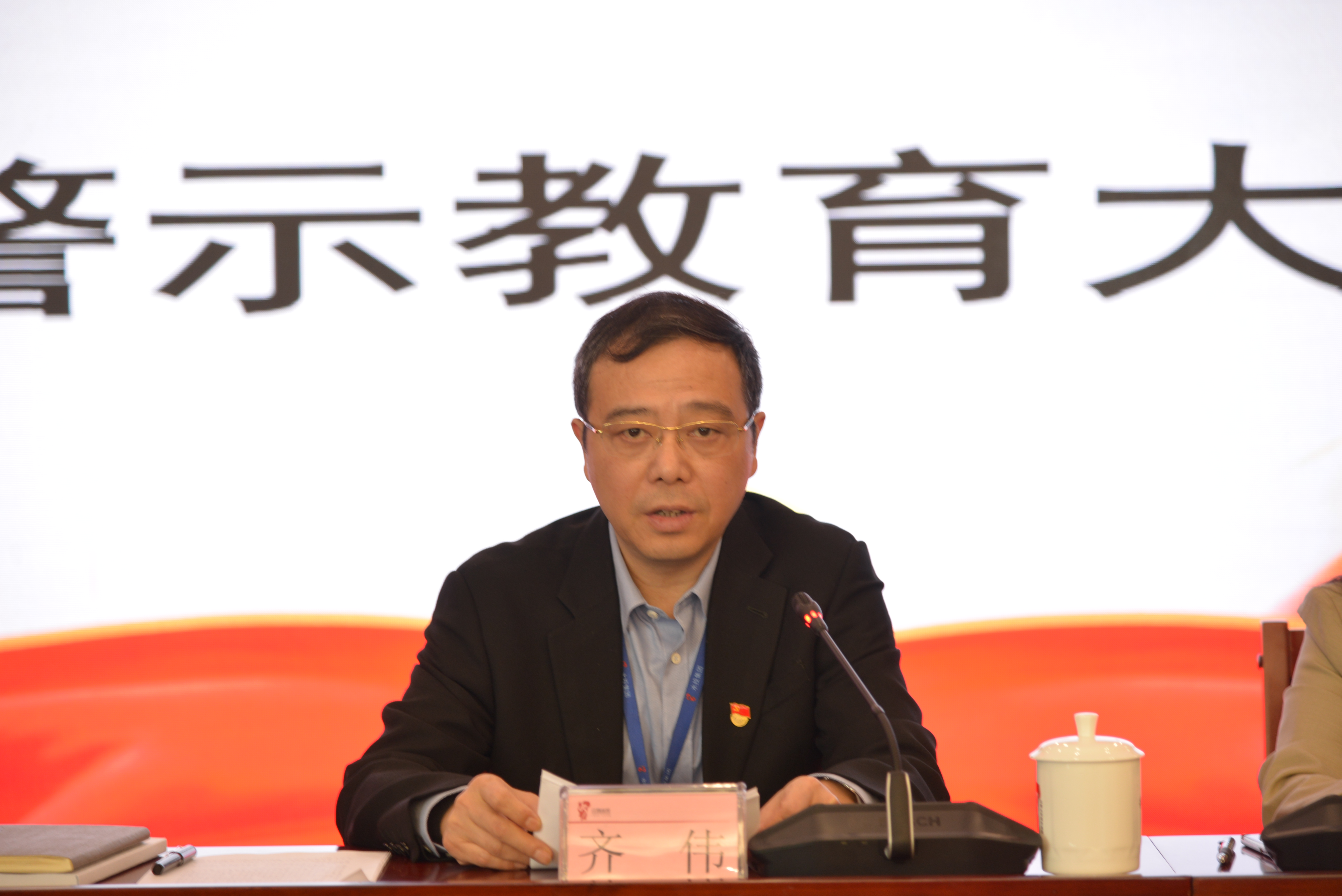 齊偉在講話中強調(diào),一是要提高政治站位、堅定正確方向,充分認(rèn)識開展警示教育推動以案促改工作的極端重要性。深刻認(rèn)識到開展警示教育推動以案促改工作,是深入貫徹習(xí)近平總書記關(guān)于堅持標(biāo)本兼治重要戰(zhàn)略思想的政治行動,是推動全面從嚴(yán)治黨向縱深發(fā)展的關(guān)鍵舉措,是全面加強黨風(fēng)廉政建設(shè)的治本之策,是懲前毖后、治病救人、確保干部隊伍純潔向上的迫切需要,更是加快推進(jìn)集團(tuán)高質(zhì)量發(fā)展的重要保證,要切實把思想和行動統(tǒng)一到中央、省委和集團(tuán)黨委的決策部署上來,以高度的政治自覺、思想自覺和行動自覺,堅定不移地推動以案促改向縱深發(fā)展,自覺做到清醒憂患、警鐘長鳴、自重自省,旗幟鮮明、堅定不移地與腐敗作斗爭。二是要堅持以案為警、恪守法紀(jì)底線,在細(xì)照篤行中永葆清正廉潔本色。要推動以案促改,深化運用“三會一書兩公開”警示教育,一體推進(jìn)不敢腐、不能腐、不想腐,以違法犯罪案件為反面教材,以戴靜、余劍等人為反面典型,深入剖析自己是否把好“理想信念關(guān)”、“權(quán)力行使關(guān)”、“法紀(jì)約束關(guān)”、“人情交往關(guān)”,始終做到防微杜漸、防患未然,依法履職、秉公用權(quán)、廉潔從業(yè),用扎實的作風(fēng)樹立起國企員工忠誠、干凈、擔(dān)當(dāng)?shù)牧己眯蜗蟆?/SPAN>三是要落實“兩個責(zé)任”、強化責(zé)任擔(dān)當(dāng),確保警示教育取得扎實成效。要強化責(zé)任落實,注重日常教育,狠抓制度執(zhí)行,把執(zhí)行制度作為一面自律的“鏡子”,把維護(hù)制度作為一把監(jiān)督的“尺子”,努力讓制度和紀(jì)律真正成為企業(yè)發(fā)展的保障,以更加堅決的態(tài)度,更加有力的措施,更加務(wù)實的作風(fēng),把堅持標(biāo)本兼治、推進(jìn)以案促改工作做實做細(xì)做到位,不斷推動全面從嚴(yán)治黨向縱深發(fā)展,努力為推動集團(tuán)高質(zhì)量發(fā)展提供堅強的紀(jì)律保障。