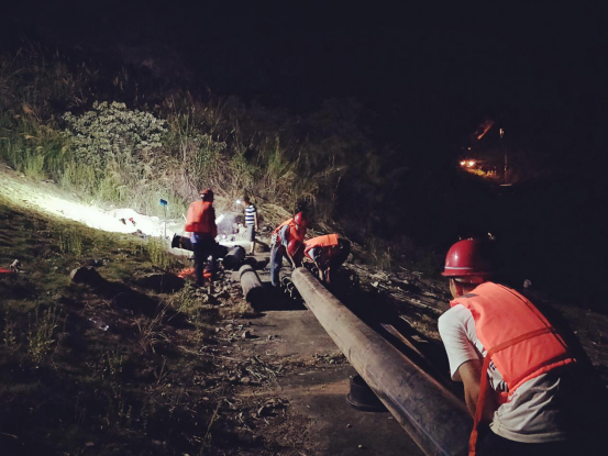 凌晨,會昌縣城已結(jié)束喧囂,相信很多人這時(shí)已經(jīng)進(jìn)入夢鄉(xiāng)。但在會昌縣周田鎮(zhèn)雷公壩水庫,會昌潤泉水廠管道維修人員在這里已經(jīng)持續(xù)奮戰(zhàn)了20多個小時(shí),終于完成了雷公壩水庫浮船式供取水設(shè)備管道的架設(shè)工作,增加了周田、站塘、中村片區(qū)的供水量,給他們點(diǎn)贊!