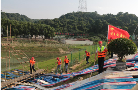 “黨旗所指就是團旗所向”水務(wù)集團湖口潤泉青年突擊隊在黨員干部的帶領(lǐng)下,他們不分晝夜,不畏艱險連續(xù)奮戰(zhàn)在防汛一線,支援建設(shè)駐堤值守。黨有號召,團有行動,兩面紅旗共同飄揚在防汛一線。